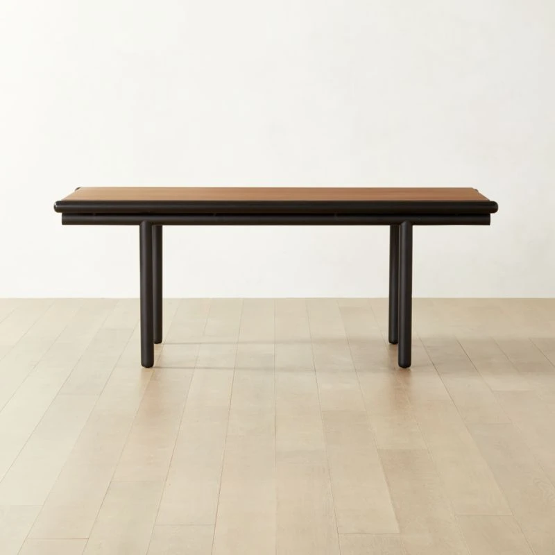 Based on an original Gianfranco Frattini design from 1985, this rectangular dining table is a tribute to Japanese woodworking techniques. Structurally complicated but striking in its simplicity, the sleek ebonized ash and iron tube base easily supports a tabletop of walnut certified sustainable by the Forest Stewardship Council ®. The ebonized ash wood on the base is lightly wire-brushed to emphasize the grain, making the table as beautiful up close as it is from a distance. CB2 exclusive.