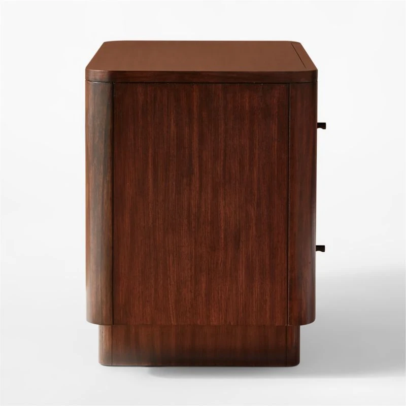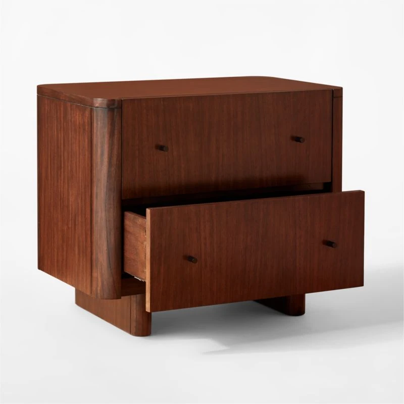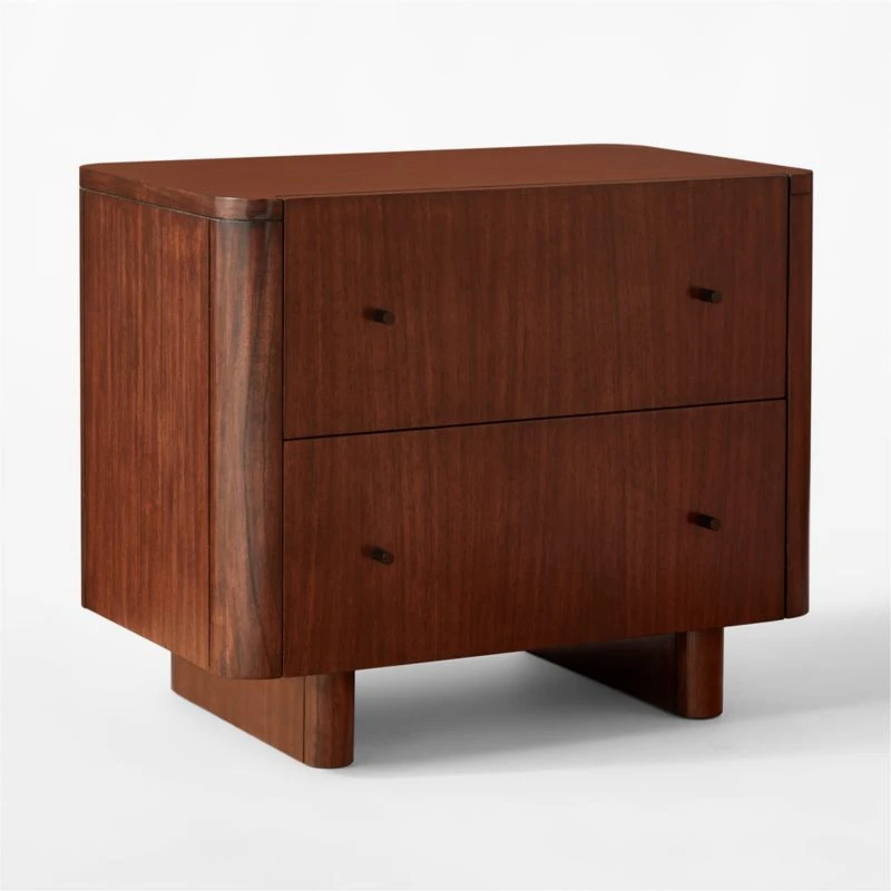 Beautiful rift-cut walnut veneer takes on rich, dark tones in this nightstand by Barcelona-based Mermelada Estudio. Satin-finish black knobs are a simple touch that add to the overall look. CB2 exclusive.