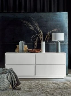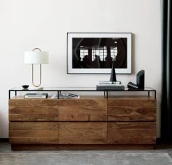 Kingsbury Low 4-Drawer Curved Oak Wood Dresser With Marble Top