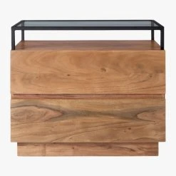 Kingsbury 2-Drawer Curved Oak Wood Nightstand With Marble Top