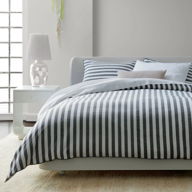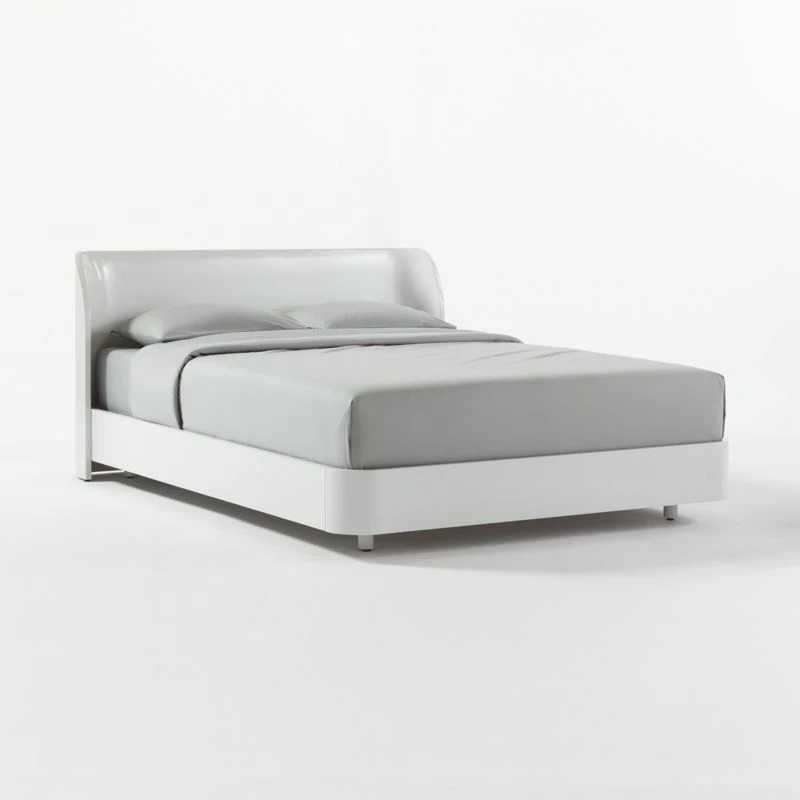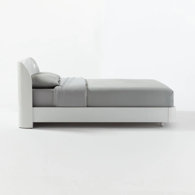 “In the very first room I was allowed to design for myself, I had a white enamel bed,” says Kara Mann. “This was like trying to reinterpret that, but a little more grown up.” Solid bed frame with rounded, seamless edges is finished in bright white lacquer for a distinctly modern look. CB2 exclusive.