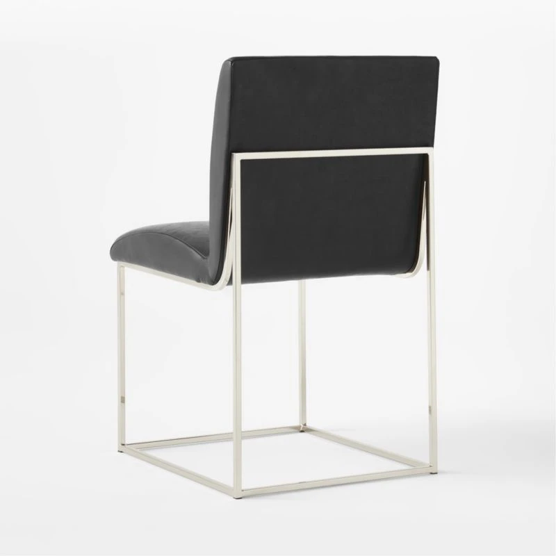 Mermelada Estudio’s mixed-material design puts an elegant twist on a classic silhouette. Polished nickel legs meet genuine black leather upholstery for an elevated juxtaposition of texture and style. CB2 exclusive.