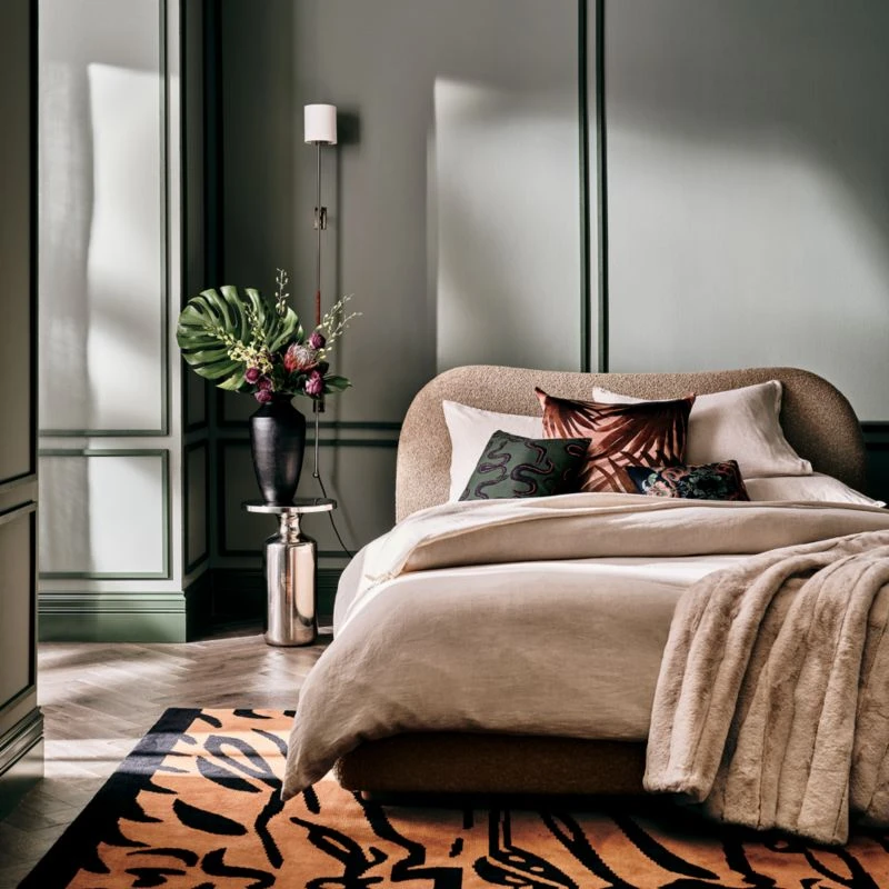 Say it with us: all-over boucle. Camel bed designed by Ross Cassidy is reminiscent of 1930s Italy with its shapely curves and cloud-like presence. A subtle nod to traditional camel-back silhouettes, with a dose of Ross’ signature flair. CB2 exclusive.
