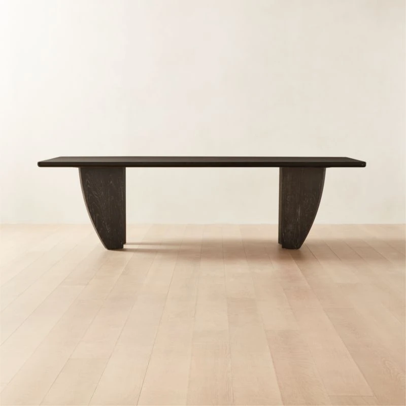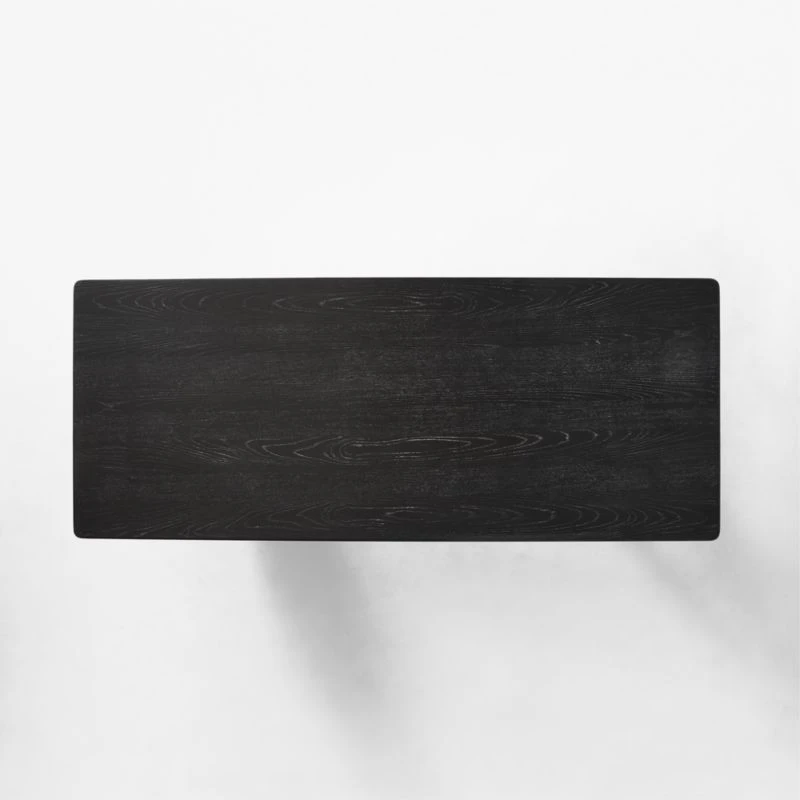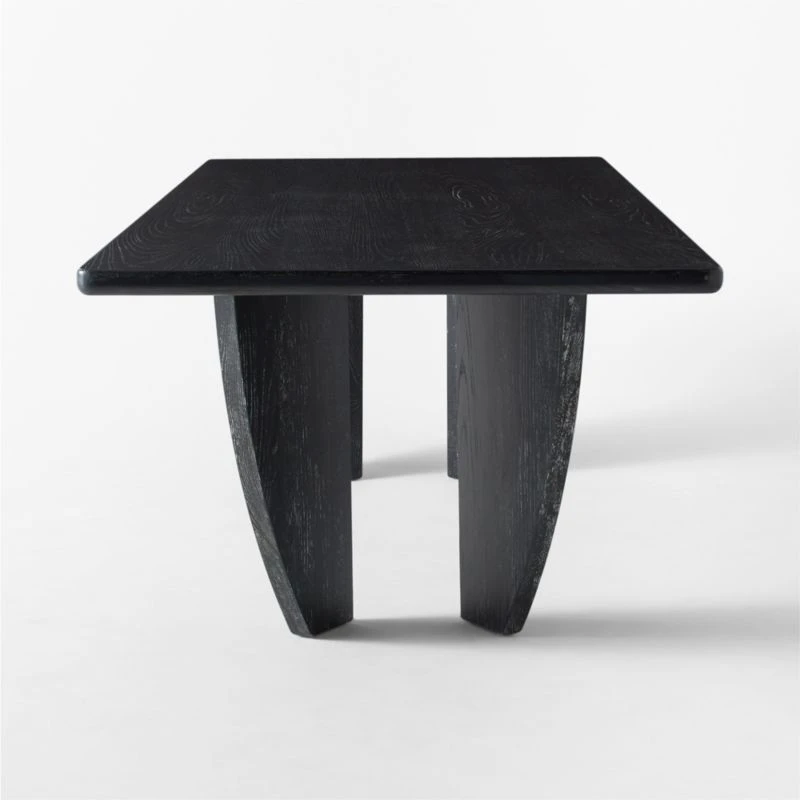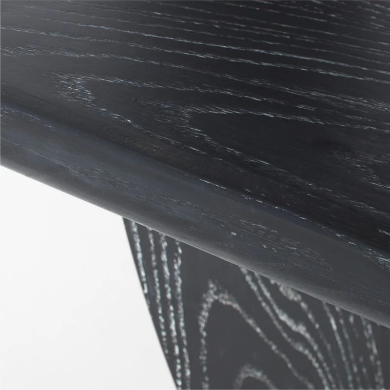 FSC ®-certified cerused ash wood is the highlight of this large-scale dining table by Studio Anansi. Wirebrushed and stained black, wood reveals a varied grain pattern and natural knots to striking effect. CB2 exclusive.
