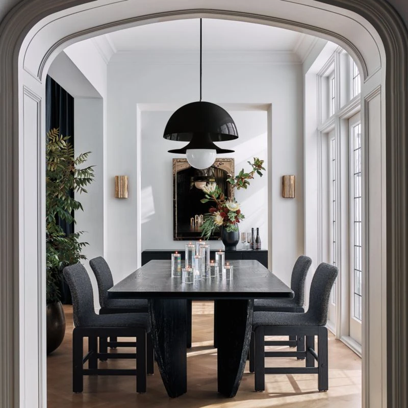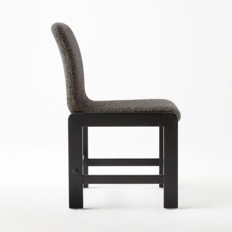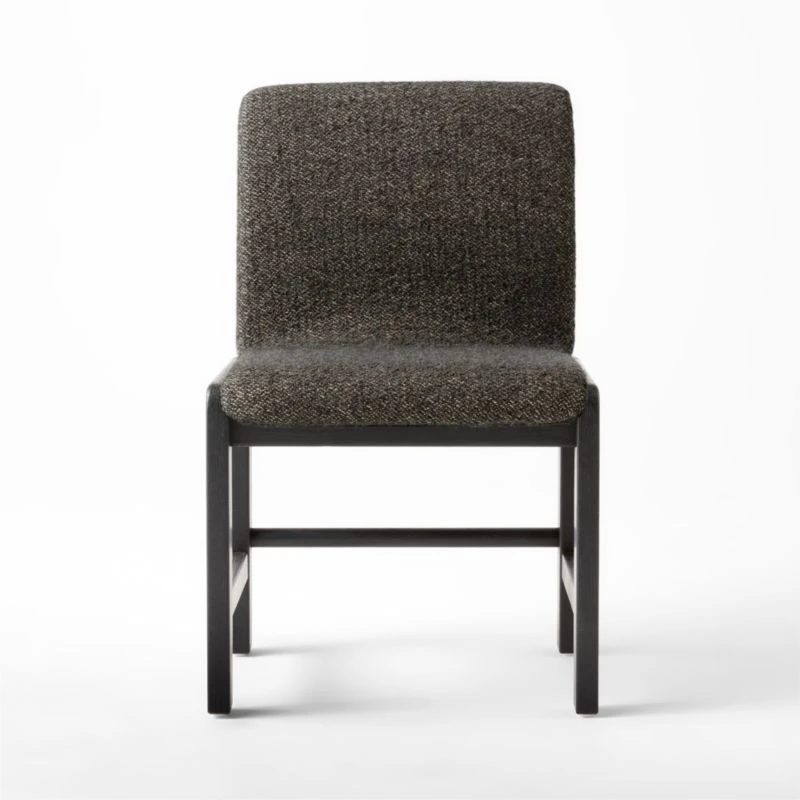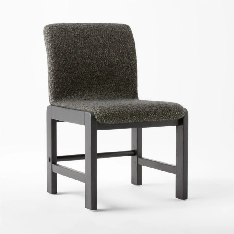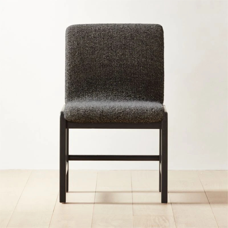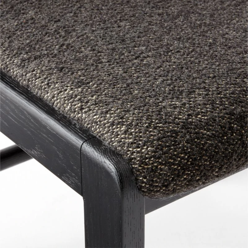 Inspired by 1970s American design, Lawson-Fenning-designed dining chair has an easygoing sensibility. Ebonized finish brings sophistication to armless solid FSC ®-certified oak frame covered with black wool-viscose fabric for textural appeal. CB2 exclusive.