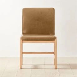 Inspired by 1970s American design, Lawson-Fenning-designed dining chair has an easygoing sensibility. Matte brown leather brings textural appeal and comfort to armless solid FSC ®-certified pine frame, inviting guests to linger over dinner, drinks and dessert. CB2 exclusive.