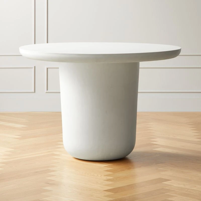 Concrete mixture cements the plump base and clean rounded top of Mermelada Estudio’s dining table. Inviting in ivory and modern in form, table seats four. Stunning in a large entry. Learn more about Mermelada Estudio on our blog. CB2 exclusive.