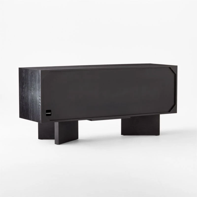Hewn from FSC ®-certified oak wood, this credenza from Kravitz Design features intricate cubist motifs and African-inspired line work. White accents are hand-routed and hand-painted, drawing attention to the carved wood handles. White oak is artfully stained multiple tones for added dimension: ebonized black, dark walnut, light oak and medium black. CB2 exclusive.