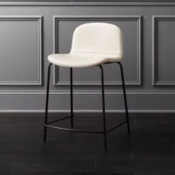 High-design meets impeccable style. We wouldn’t expect anything less from an Italian-made bar stool. Black steel frame cuts a clean silhouette topped by a cushy ergonomic seat upholstered in the most convincing faux white leather we’ve seen to date. As soft and buttery as the real thing, but more durable and forgiving. Learn about Omar De Biaggio on our blog. CB2 exclusive.