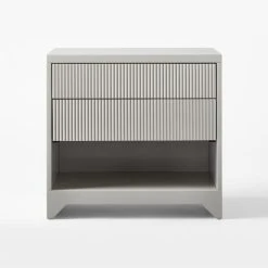 Mixed-material design by VUUE impresses with a faux leather façade wrapped in warm mango wood. Soft-close drawers are framed in steel for a striking contrast that matches the clean lines of the inset legs. CB2 exclusive.