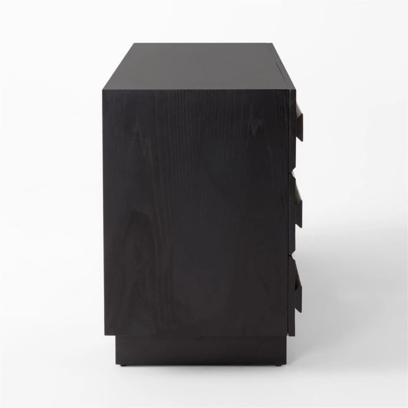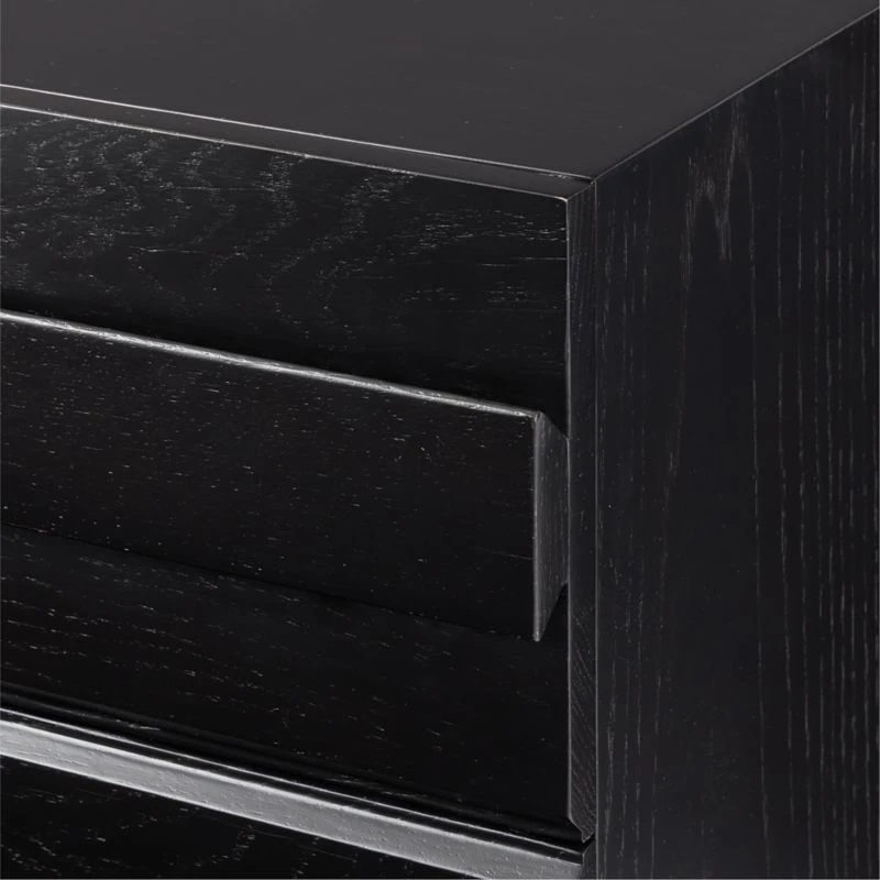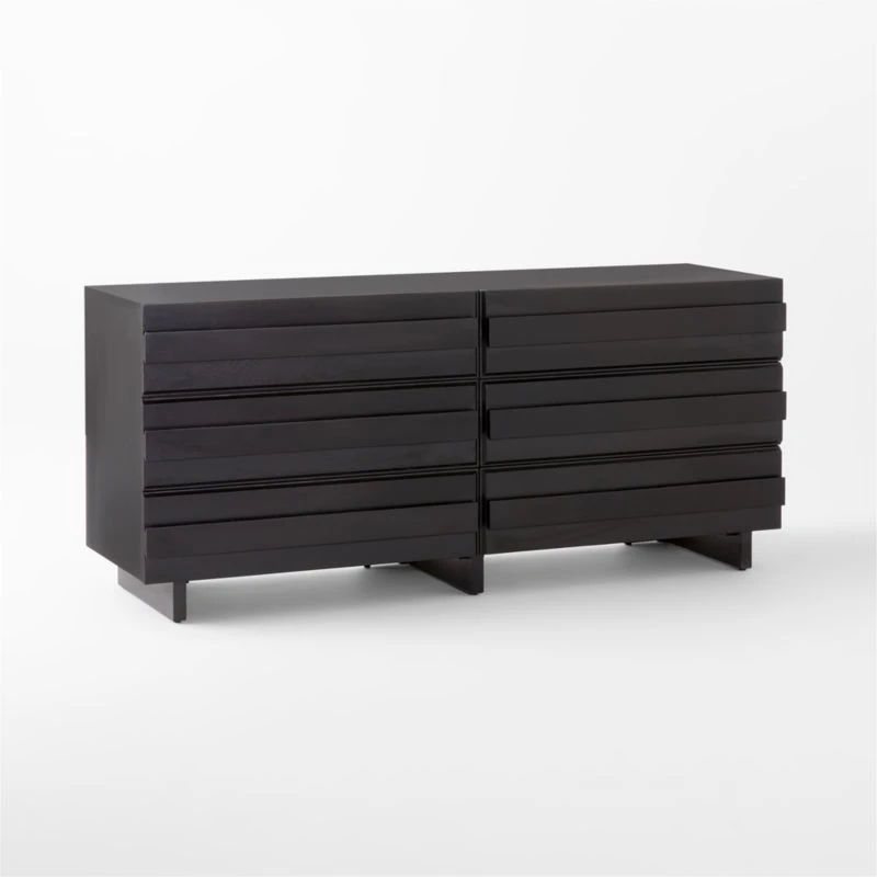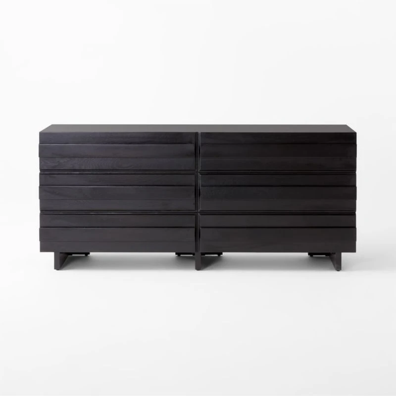 Spacious oak dresser by Lawson-Fenning accentuates the beauty of natural wood. Horizontal ribbons of white oak, certified sustainable by the Forest Stewardship Council ® and given an ebonized black finish, add dimension through naturally occurring whorls inherent to wood. Solid wood drawers have dovetail joint construction and soft-close glides; their wooden handles are incorporated into the drawer fronts for a streamlined look. CB2 exclusive.